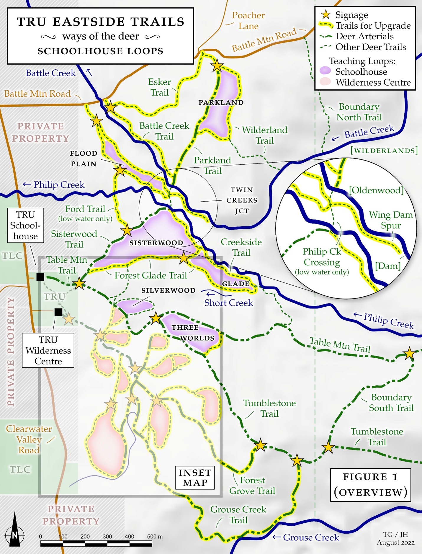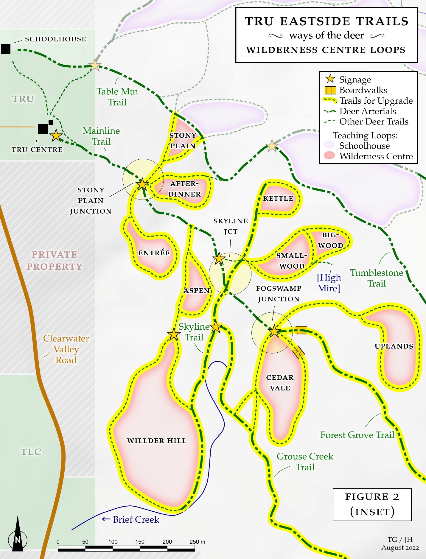 TRU and Clearwater Valley locals are working to establish a trail network from the TRU site. Trails are in place, and we are in the process of installing signage and boardwalks. Please enjoy the beauty and respect the delicate ecosystem around the trails.
